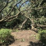 車の倒壊、そして数百年の樹齢の大樹が根元から捲れ上がる状況は、想像を絶する物でした。